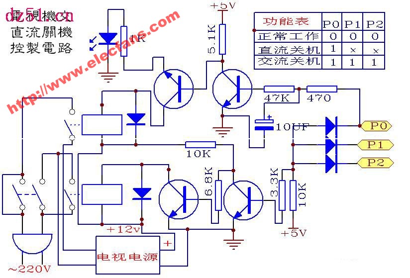 下圖是索尼,海信,長虹電視機常用的自動關(guān)機電路,電路非常簡單。明了。