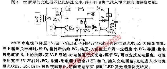 本鎳鎘電池充電電路能批示電池是否已充足電,電路如下圖: