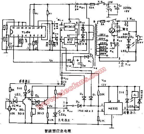 可調(diào)充電電流自動(dòng)應(yīng)急電源電路 (國(guó)外電源電路)