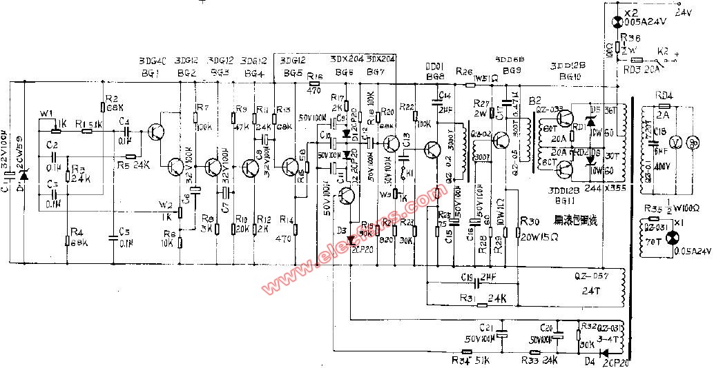 逆變電源電路(100W),電路包括工頻振蕩器,推挽復(fù)合放大器,升壓變壓器和開關(guān)器件等。即可做為逆變電源,也可作為充電器。