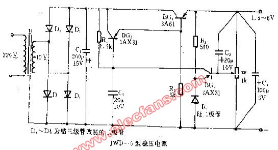 此穩(wěn)壓電源可調(diào)范圍在3.5V~25V之間任意調(diào)節(jié),輸出電流大,并采用可調(diào)穩(wěn)壓管式電路,