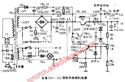 金星C37-401型彩色電視機(jī)開(kāi)關(guān)電源電路
