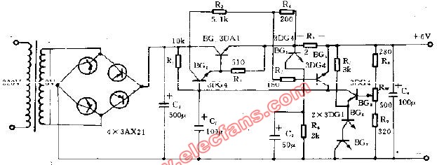 三極管組成的6V輸出穩(wěn)壓電源電路
