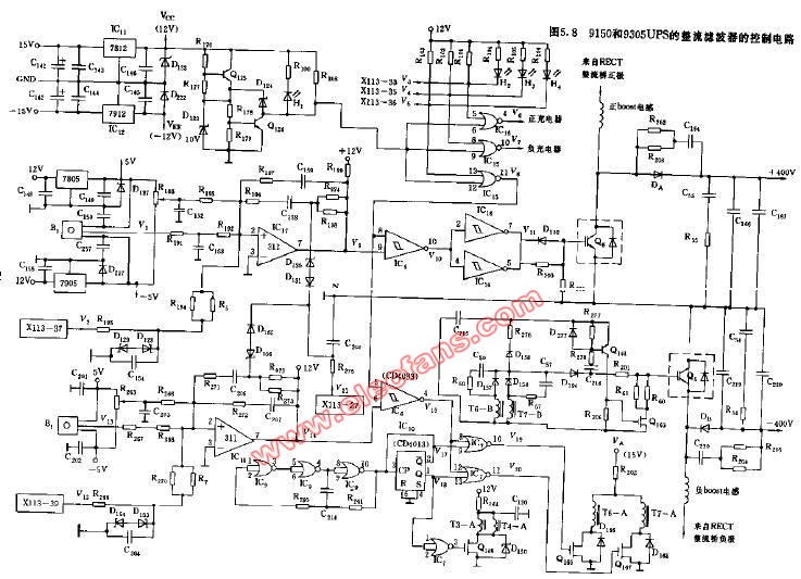 9150和9305 UPS的市電輸入啟動電路,整流濾波器和充電型的主控電路原理圖
