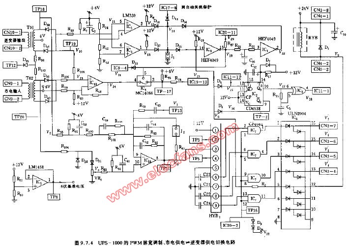 UPS-1000的PWM脈寬調(diào)制,市電供電逆變器供電切換電路