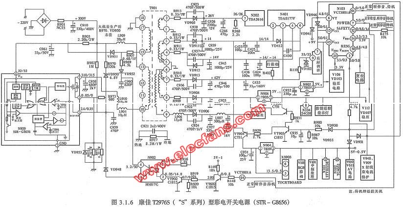 康佳T296S型彩電開關(guān)電源電路圖(STR-G8656)