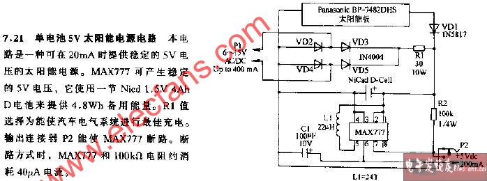 該電路由太陽能電池板供電,可為您提供5V純穩(wěn)壓直流電壓。該太陽能電池電源電路由振蕩晶體管和穩(wěn)壓晶體管組成。
