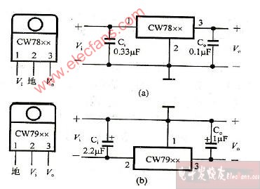 端穩(wěn)壓器,下面分別介紹其典型應(yīng)用及選擇原則。圖3 固定式三端穩(wěn)壓器的典型應(yīng)用固定式三端穩(wěn)壓器的常見產(chǎn)品如圖3所示。其中,CW78××系列穩(wěn)壓器輸出固定的正電壓,如7805輸出為+5V:CW79××系列