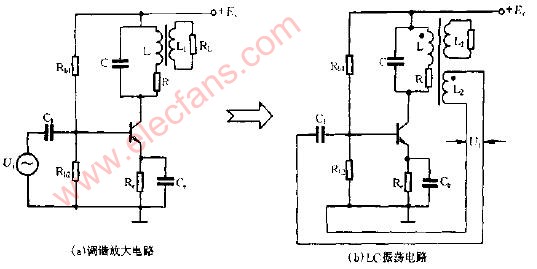 調(diào)諧放大電路演變位LC振蕩電路圖