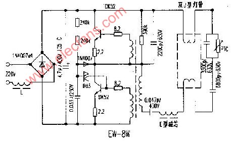 電子發(fā)燒友網>電子技術應用>電路原理圖>電源>電源電路圖>EW-8W電子鎮(zhèn)流器電路