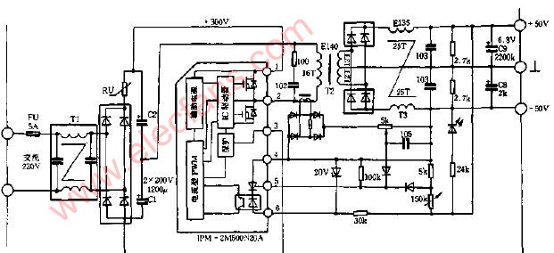 串聯(lián)F-2250后級功放開關(guān)穩(wěn)壓電源電路圖