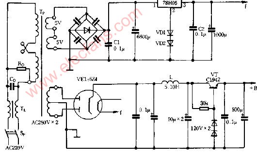 電子發(fā)燒友網(wǎng)>電子技術(shù)應(yīng)用>電路原理圖>電源>電源電路圖>低噪聲電子管前級(jí)電源原理圖