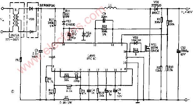 用電源變壓器降壓的PFC電路圖