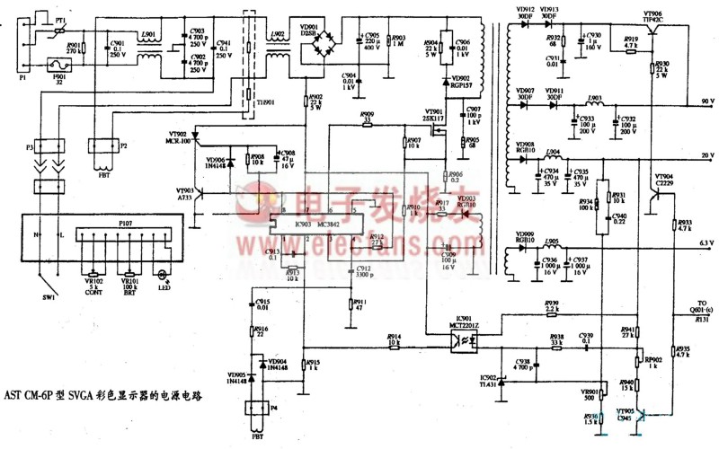 AST GM-8T型SVGA彩色顯示器電源電路圖