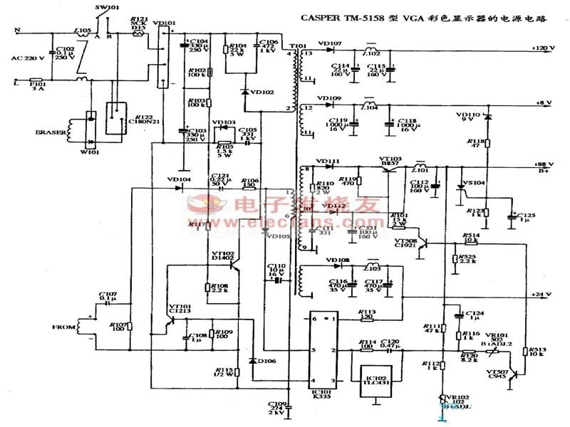 CASPER TM-5154H型SVGA多頻彩色顯示器電源電路圖