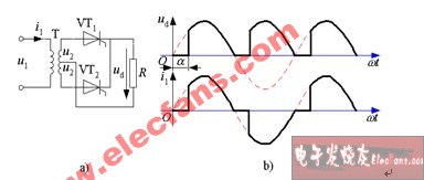 假定把整流電路的構(gòu)造作一些調(diào)整,能夠得到一種能充沛運(yùn)用電能的全波整流電路。圖3是全波整流電路的電原理圖。