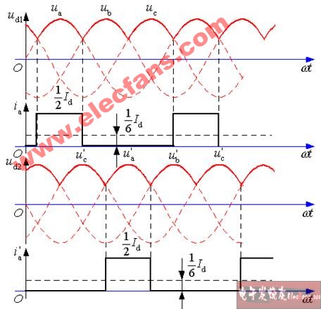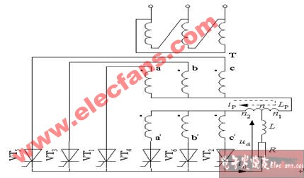 在電解電鍍等工業(yè)中,常用到低電壓大電流(例如幾十伏,幾千至幾萬(wàn)安)可調(diào)直流電源。圖2-28 為帶平衡