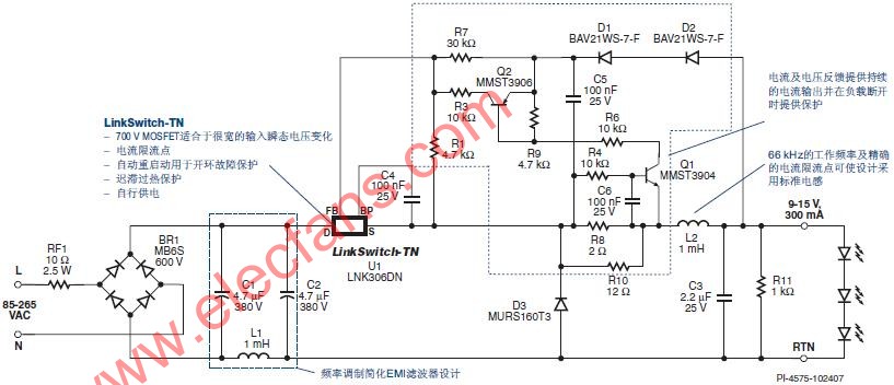 LinkSwitch系列恒壓/恒流式單片開關(guān)電源的應(yīng)用