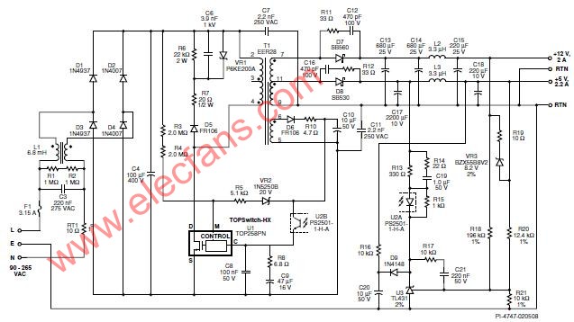 1226 使用TOP257EN的35 W LCD顯示器電源的電路設(shè)計