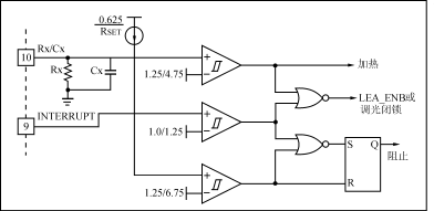 在陰極預(yù)熱之后,倒相器的頻率降到fSTART,它產(chǎn)生的高電壓值點亮了燈管。如果當(dāng)燈管已點亮?xí)r,沒有檢測到燈管電流,那么在Cx經(jīng)Rx放電到1?25V門限電平之前,Cx的充電電流被阻斷,并且倒相器也被阻止工作。在這種狀態(tài)下關(guān)斷倒相器,就能在燈管未能放電發(fā)光或者脫離管座時,防止倒相器引起過熱。典型應(yīng)用時選用高阻值Rx,可使這一時間設(shè)置得相當(dāng)長。?