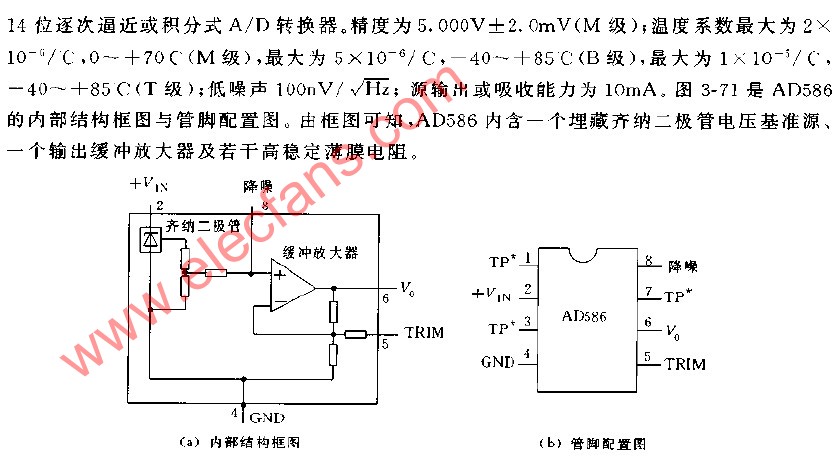 電子發(fā)燒友網>電子技術應用>電路原理圖>電源>電源電路圖>AD586的內部結構框圖與管腳配置圖