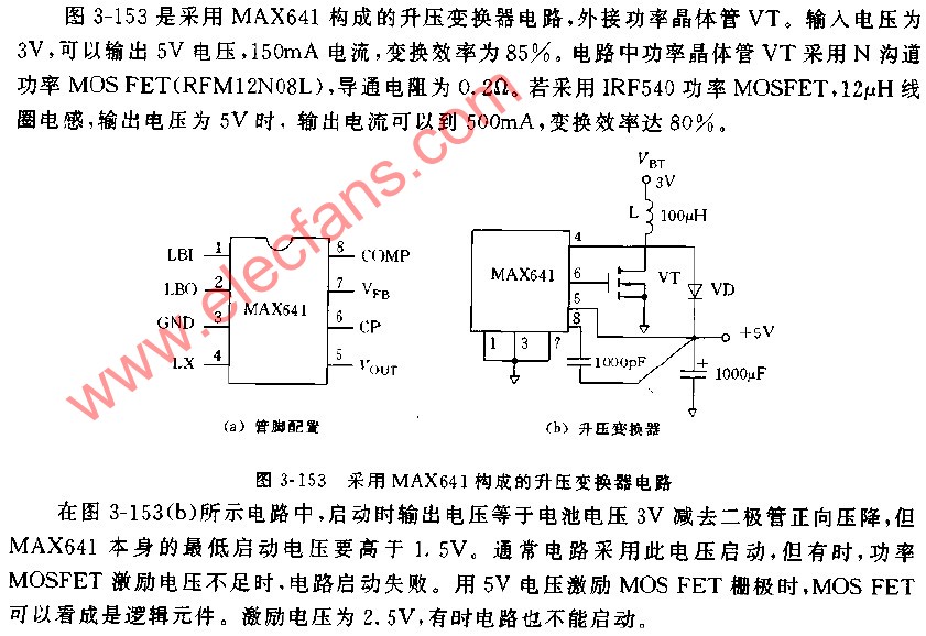 采用MAX641構(gòu)成的升壓變換器電路