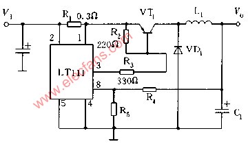 大電流輸出電路圖可采用外接晶體管VT1擴(kuò)流,輸出電壓由R4和R5確定,LT111的輔助運(yùn)放可用做電池低電壓檢測(cè)器。