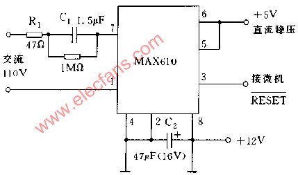 使用全波整流MAX610的5V 50MA電源電路