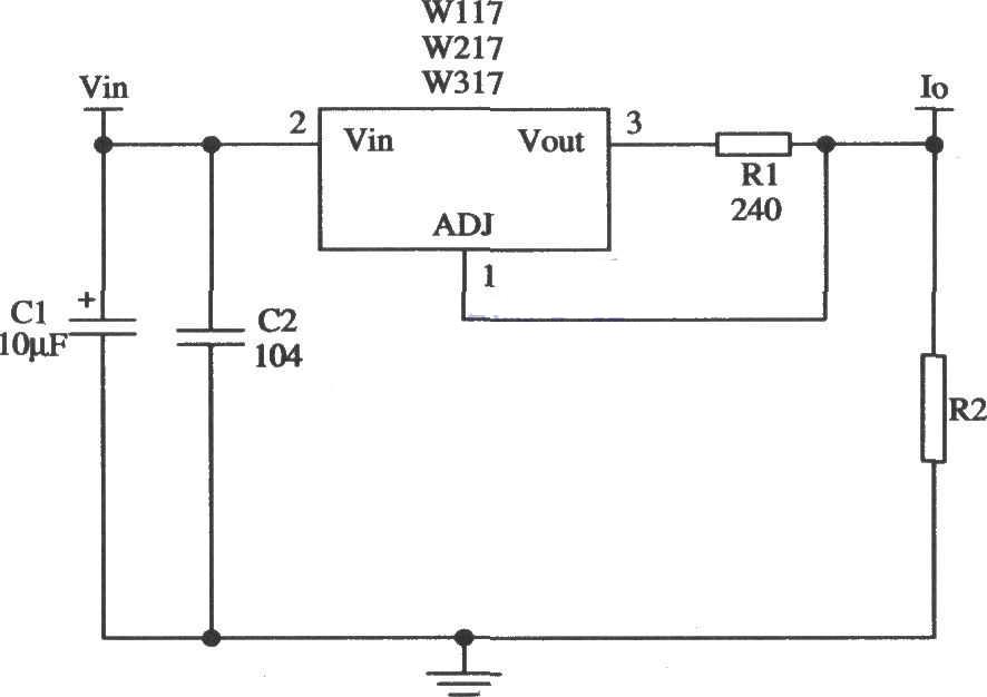 圖中所示是W317三端可調(diào)式正集成穩(wěn)壓器的基本應(yīng)用線路.