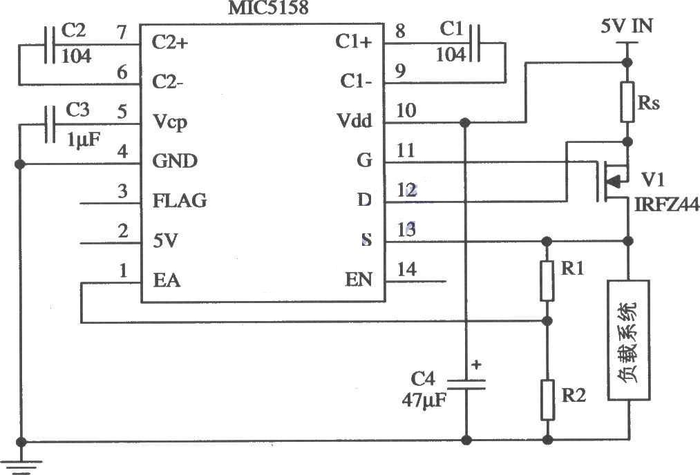 多個MOSFET管并聯(lián)組成的大電流輸出線性穩(wěn)壓器電路(MIC5158)