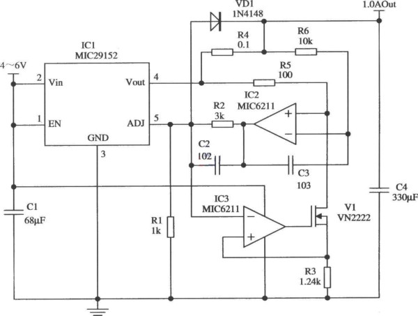 MIC29152和雙運(yùn)放構(gòu)成的恒流源電路