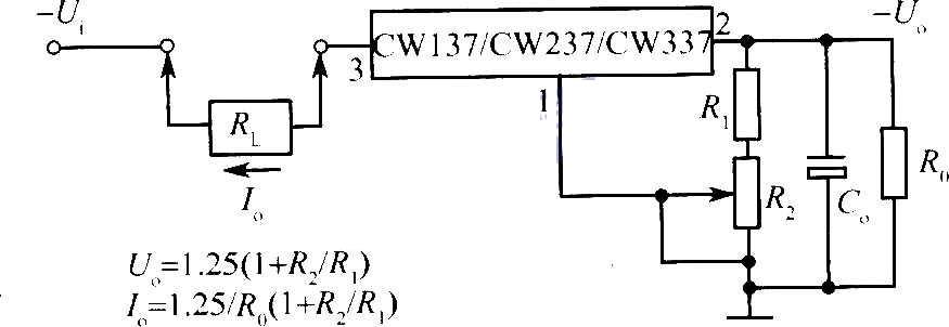 CW137/CW237/CW337 電路是負壓可調(diào)輸出集成穩(wěn)壓器。輸出電壓可設(shè)定范圍-1.25V~-37V(47V/HV)。最小輸入壓差≤2.7V。