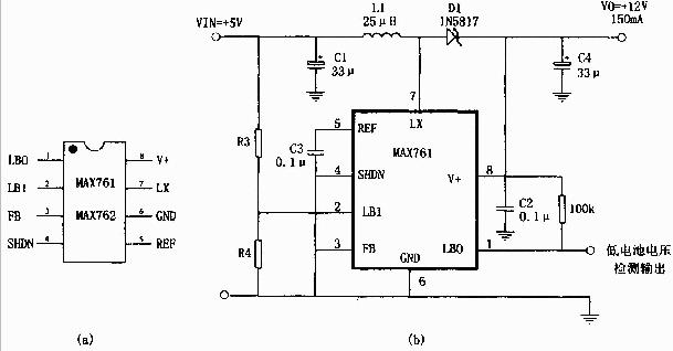 MAX761組成的5V轉(zhuǎn)12V升壓電源電路