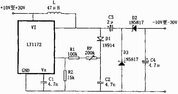 LT1172組成的極性反轉(zhuǎn)型升壓電源電路