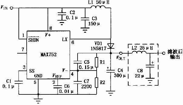 MAX752升壓開關(guān)型DCDC變換器應(yīng)用電路