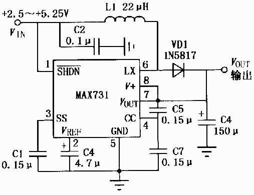 MAX731為開關(guān)控制型DC—DC升壓變換器,