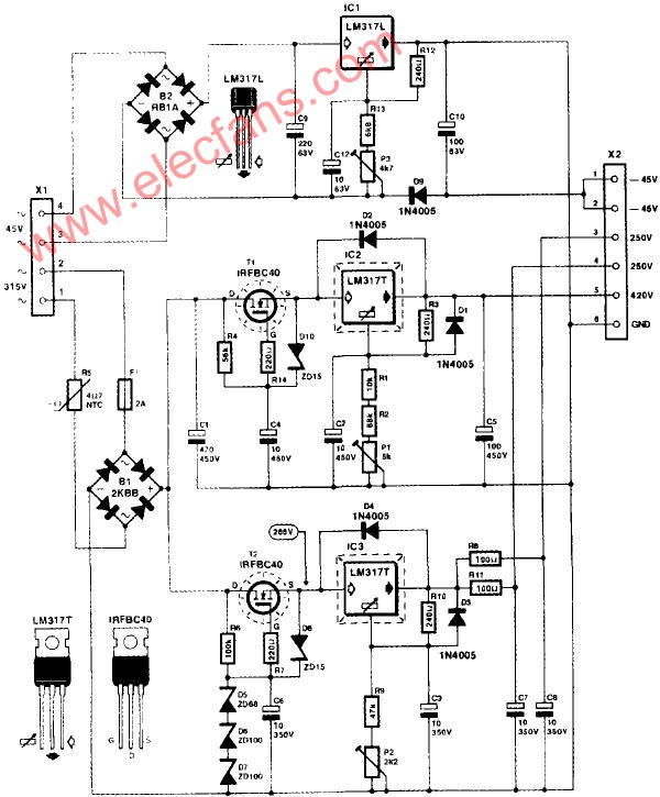 供電子管前置放大用的高壓電源:這款供電裝置能為電子管前置放大器提供無交流聲的穩(wěn)定工作電壓。也包括提供負偏置電壓。電子管音頻放大器電路都需要有一個高電壓電源。對