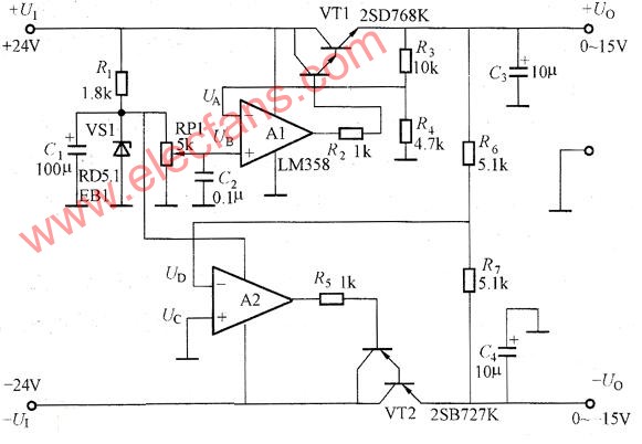 22正負(fù)15v直流穩(wěn)壓電源的電路原理圖免費(fèi)下載