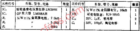OP放大器可用兩種電源,但本電路采用的是+15V單一電源。下面計(jì)算一下OP放大器允許的漂移量,因?yàn)辇R納二極管的溫度系數(shù)是0.0002%/℃MAX,對于V2=6.95V的電壓來說,其漂移電壓為14UV/C度,但是,電路的典型值應(yīng)是0.00003%/℃,OP放大器的電壓漂移為2.1UV,電路采用了低于此值的LM308A。