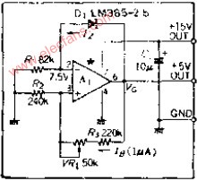 本電路是低功耗基準電壓電路,采用了可用30UA置偏的低功耗基準電壓用IC(LM385)。