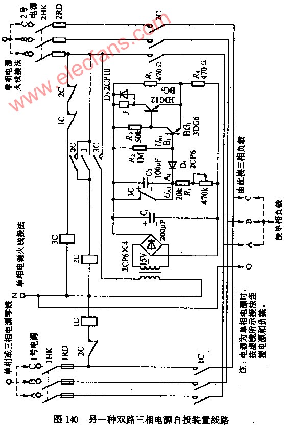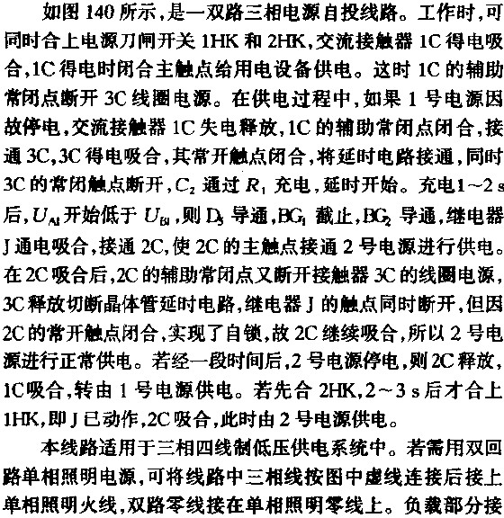 單相電源自動轉(zhuǎn)換的雙路自投控制線路