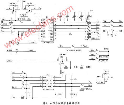 四節(jié)鋰電池串聯(lián)保護(hù)系統(tǒng)電路圖