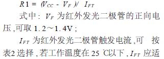 R3 是觸發(fā)功率雙向可控硅的限流電阻,其值由交流電網(wǎng)電壓峰值及觸發(fā)器輸出端允許重復(fù)沖擊電流峰值決定,可按下式選取: