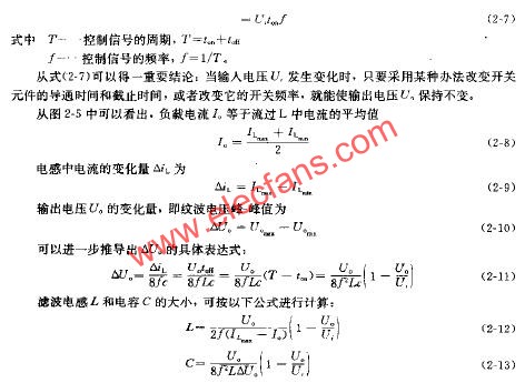升壓式開關(guān)穩(wěn)壓電源的工作原理,可用圖2-6來說明,在開關(guān)管T導(dǎo)通期間,電感L兩端的電壓U等于輸入電壓U。