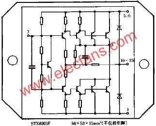 STK6303是三洋公司的一種大功率厚膜集成電路,一塊電路分成A、B兩面,在國內(nèi)尚很鮮見,至今尚未查到其內(nèi)部電路原理圖。估計是專用于某些進(jìn)口大功率變頻調(diào)速用電機(jī)伺服。通過反復(fù)試驗,發(fā)現(xiàn)用其B面做后級