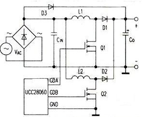 交錯雙相TM—PFC電路僅增加L2、Q2和D2等幾個元件,而性能卻有較大的提升。