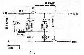 發(fā)光二極管市電指示電路如圖10-10 所示,電路中的C1和C2起降壓和鎮(zhèn)流作用, R用來限止瞬態(tài)沖擊電流。該電路具有耗電少、工作可靠等優(yōu)點,