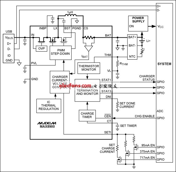 MAX8900_是高頻、開關(guān)模式充電器,用于單