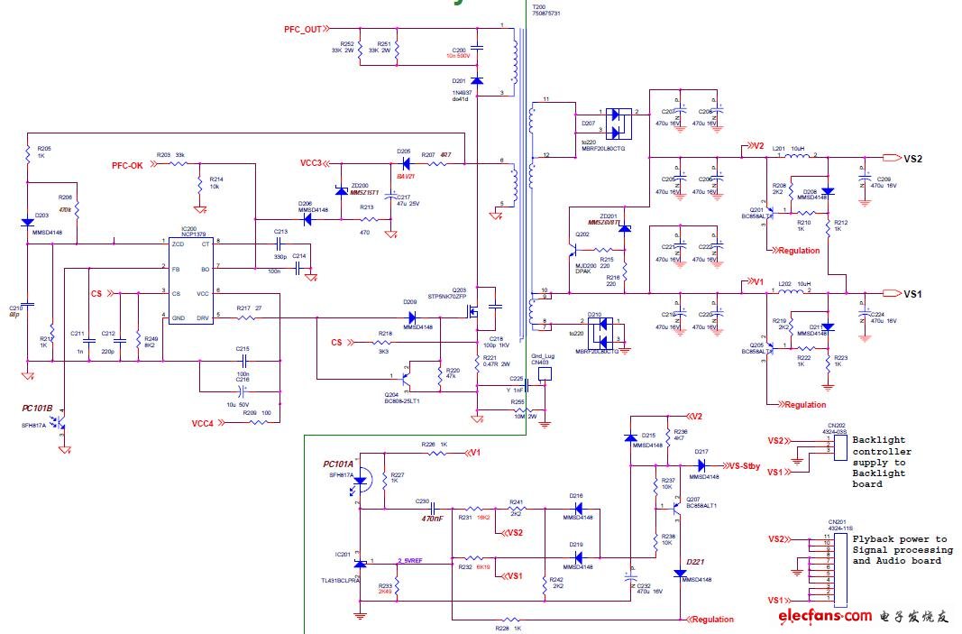 48263 本文主要介紹了液晶電視機(jī)電源電路圖大全(四款液晶電視機(jī)電源電路原理圖詳解)。液晶彩電的開關(guān)電源主要由交流抗干擾電路、整流濾波電路、功率因數(shù)校正電路(多數(shù)機(jī)型有此電路)、啟動(dòng)電路、開關(guān)電源控制電路、穩(wěn)壓電路、保護(hù)電路等幾部分構(gòu)成。下面為大家具體介紹了部分電路原理以及其他幾款液晶電視機(jī)電源電路分析。