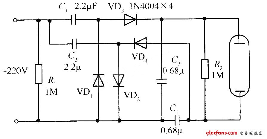 電子發(fā)燒友網(wǎng)>電子技術(shù)應(yīng)用>電路原理圖>電源>電源電路圖>倍壓整流電子鎮(zhèn)流器電路
